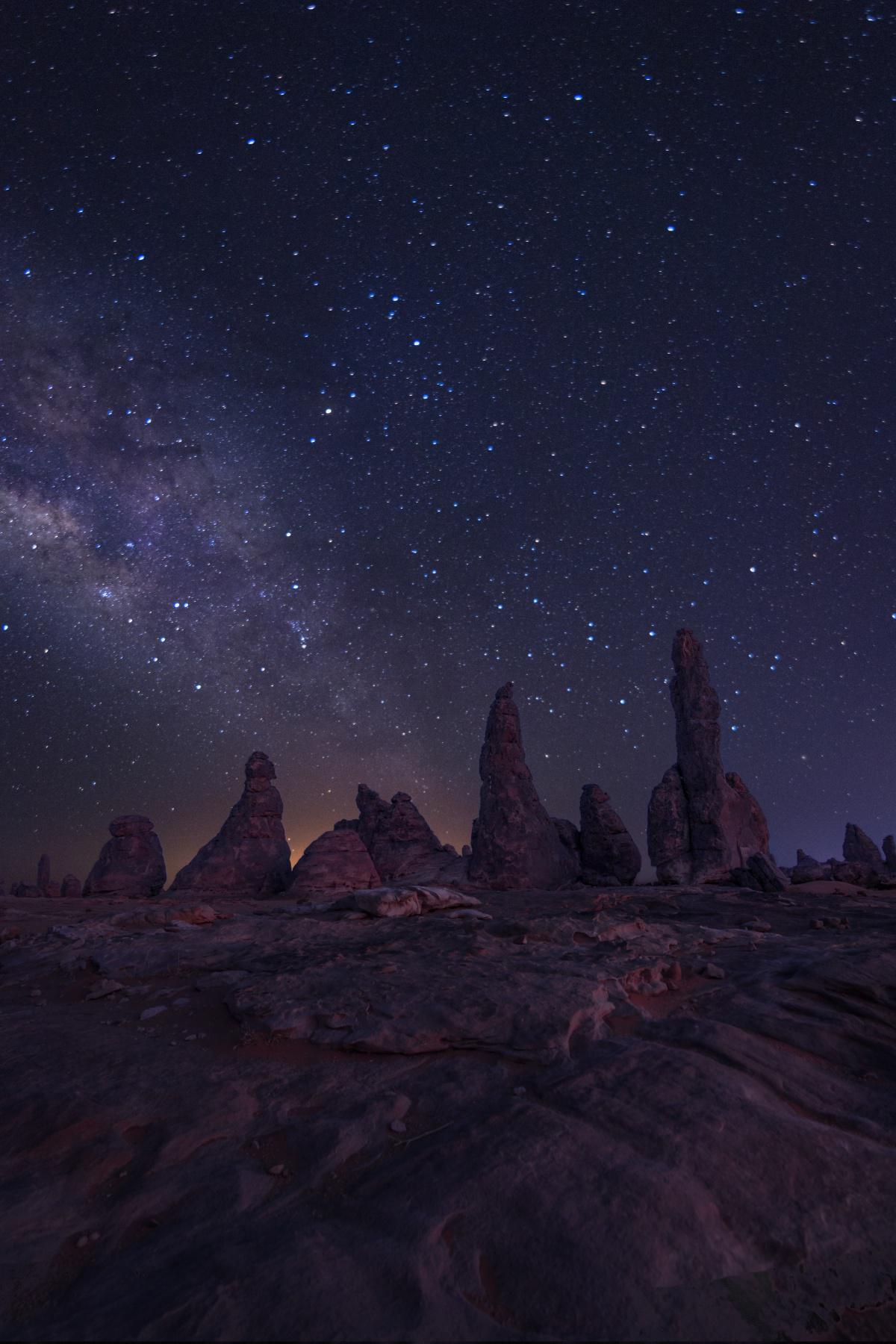 تكوينات صخرية حمراء عجيبة اتخذت أشكال مختلفة ومتفاوتة الحجم لتشكل لوحة أيقونية فريدة ذات منظر صحراوي ساحر وجميل.
