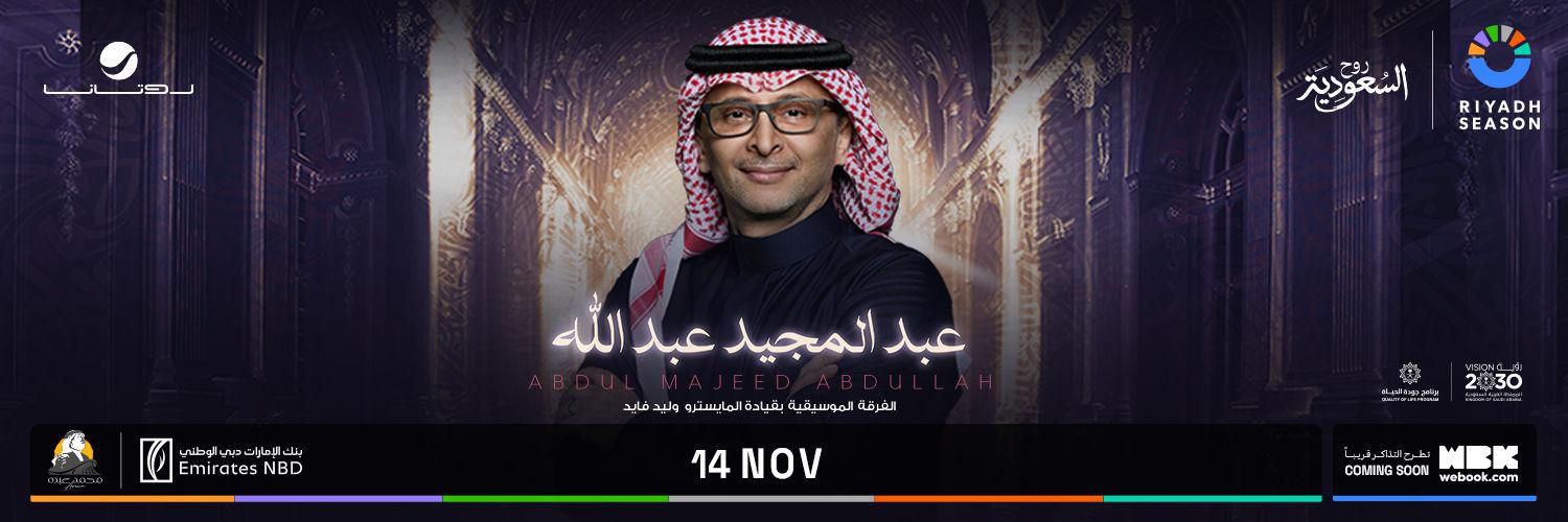 عِش أمسية لا تُنسى مع صوت الأسطورة عبد المجيد عبدالله في بوليفارد رياض سيتي! استعدوا لأمسية طربية ساحرة ضمن فعاليات موسم الرياض، حيث يلتقي عشاق الفن الأصيل مع النجم الكبير عبدالمجيد عبدالله يوم 14 نوفمبر على مسرح محمد عبده – بوليفارد سيتي، الرياض. يُعتبر هذا الحفل من أبرز الأحداث الفنية المنتظرة، حيث سيأخذكم عبدالمجيد عبدالله في رحلة موسيقية تجمع بين أجمل أغانيه الكلاسيكية وأحدث أعماله، وسط أجواء ساحرة وإضاءة مبهرة تُضفي على الأمسية طابعًا فريدًا. 📅 التاريخ: 14 نوفمبر 📍 المكان: مسرح محمد عبده – بوليفارد رياض سيتي 🎤 الفنان: عبدالمجيد عبدالله 🎟 التذاكر: الحجز قريبًا لا تفوّتوا فرصة حضور هذا الحدث الاستثنائي ضمن فعاليات موسم الرياض، واستمتعوا بتجربة فنية لا تتكرر. تابعونا لمعرفة موعد طرح التذاكر واحجزوا أماكنكم فور فتح الحجز!