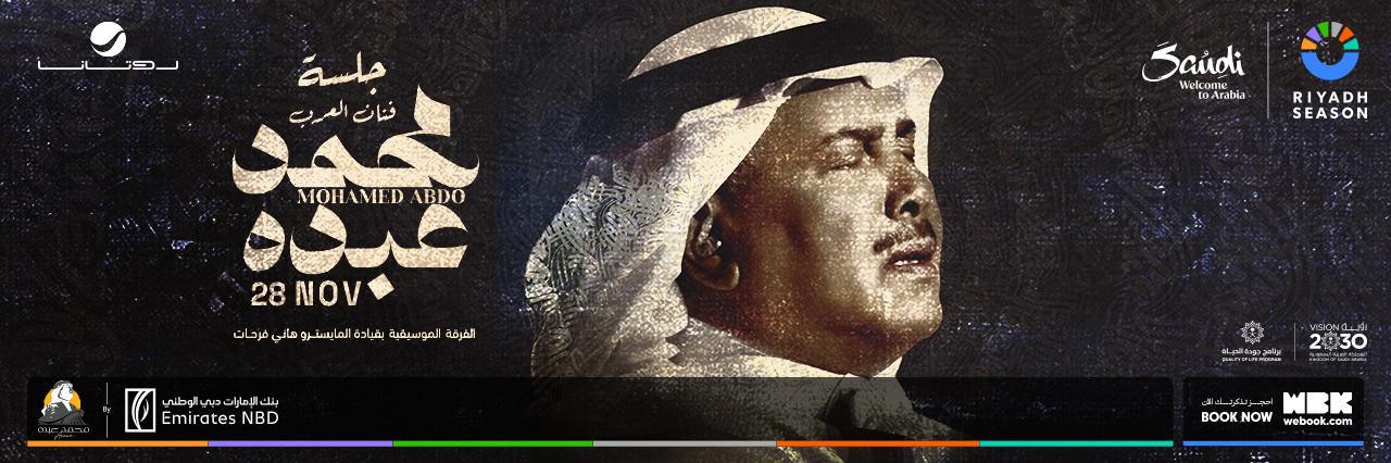 استعدوا لليلة لا تُنسى مع فنان العرب محمد عبده، حيث يُطل عليكم مباشرة على مسرح الرياض في 28 نوفمبر، بمصاحبة المايسترو العالمي هاني فرحات. عِش أجواءً ساحرة مليئة بالأغاني الخالدة والأداء الاستثنائي الذي أسر قلوب الملايين في العالم العربي.