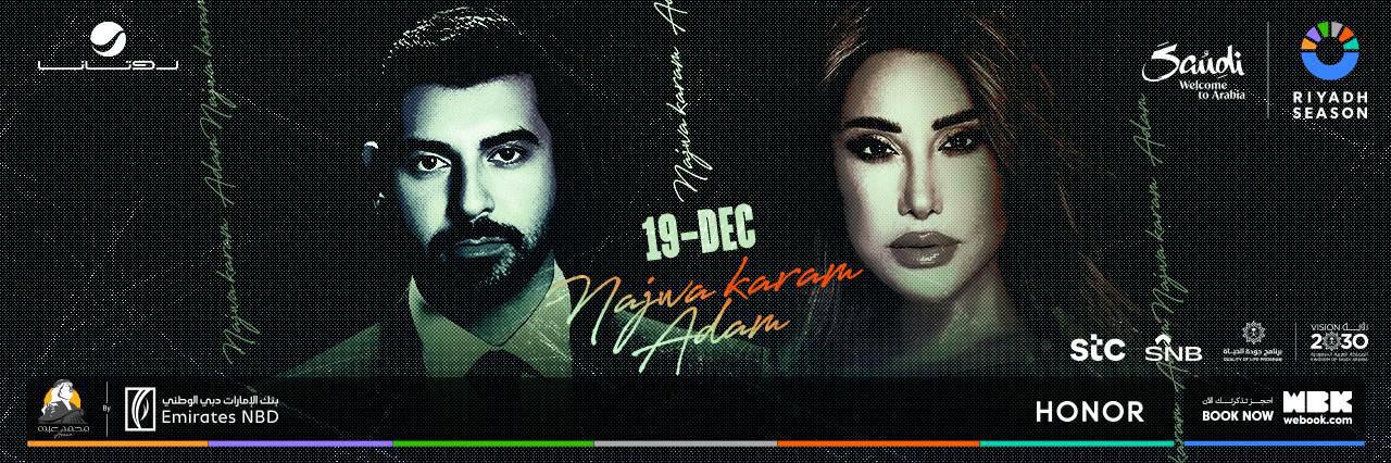 جهّزوا أنفسكم لسهرة من طرازٍ خاص تجمع بين شمس الأغنية اللبنانية نجوى كرم وصوت الإحساس الراقي آدم في الرياض. أمسية استثنائية تلتقي فيها قوة الصوت مع رقة الإحساس، ويجتمع فيها الشغف على المسرح ليخلق لحظات ما تتكرّر.